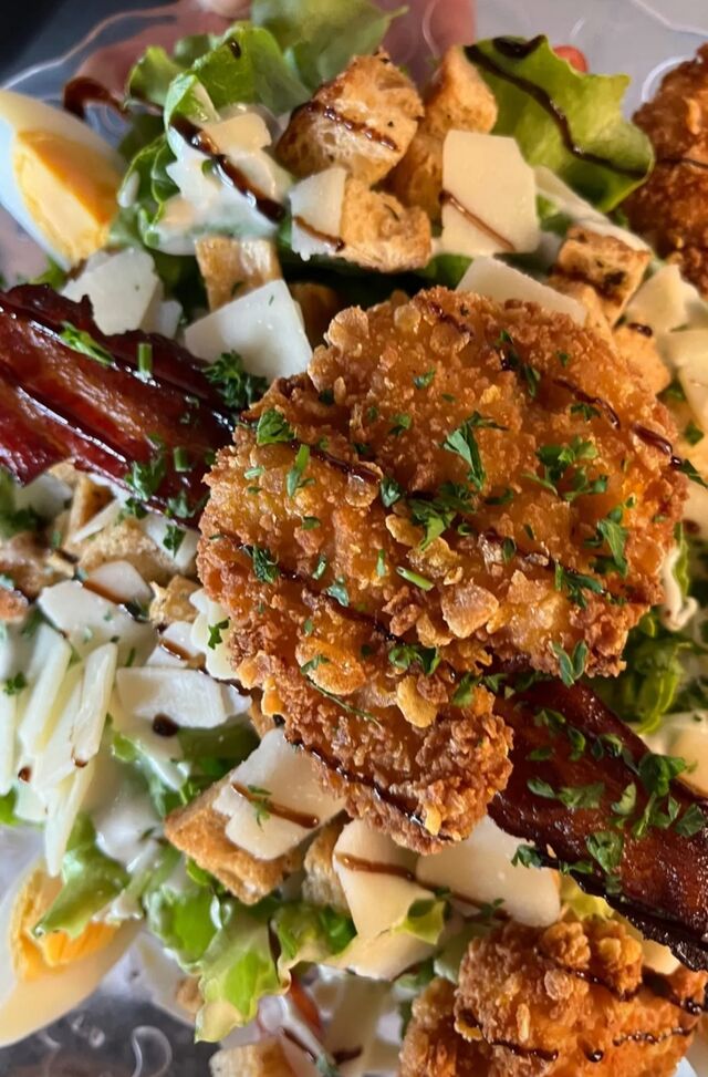 Escalope panée maison, pommes de terre grenailles, sauce ravigote et salade